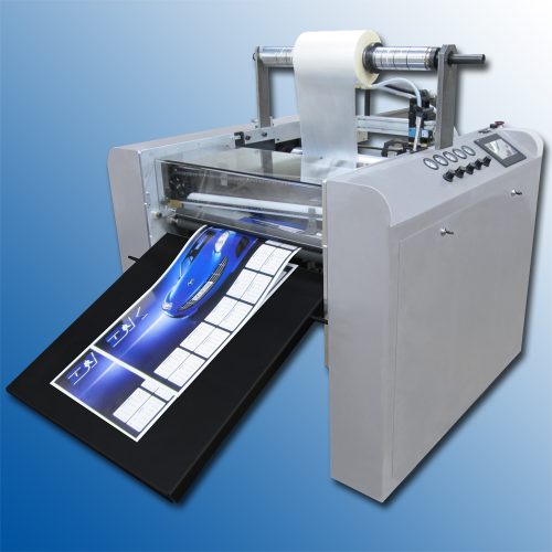 - Prints are automatically picked up at the automated sheet feeder and transported to the laminator. There’s no need for an operator to hand feed sheets into the system – simply place a stack of printed material on the feed table and let the machine do the rest. The AutoKote pro is equipped to handle a wide range of stocks from letter size up to 26″ x 30.”